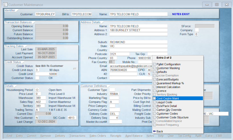 Add the required value under Cost Centre Maintenance