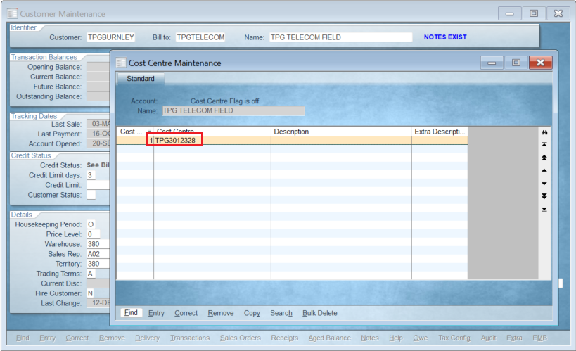 Cost Centre As Ref needs to be Y